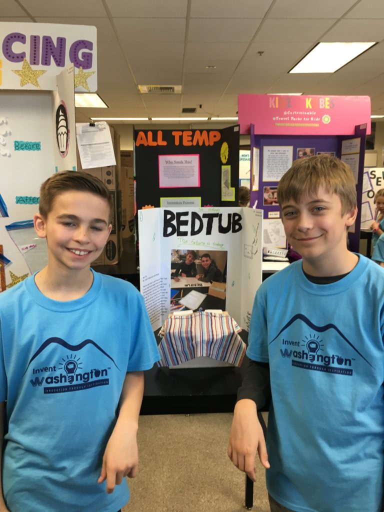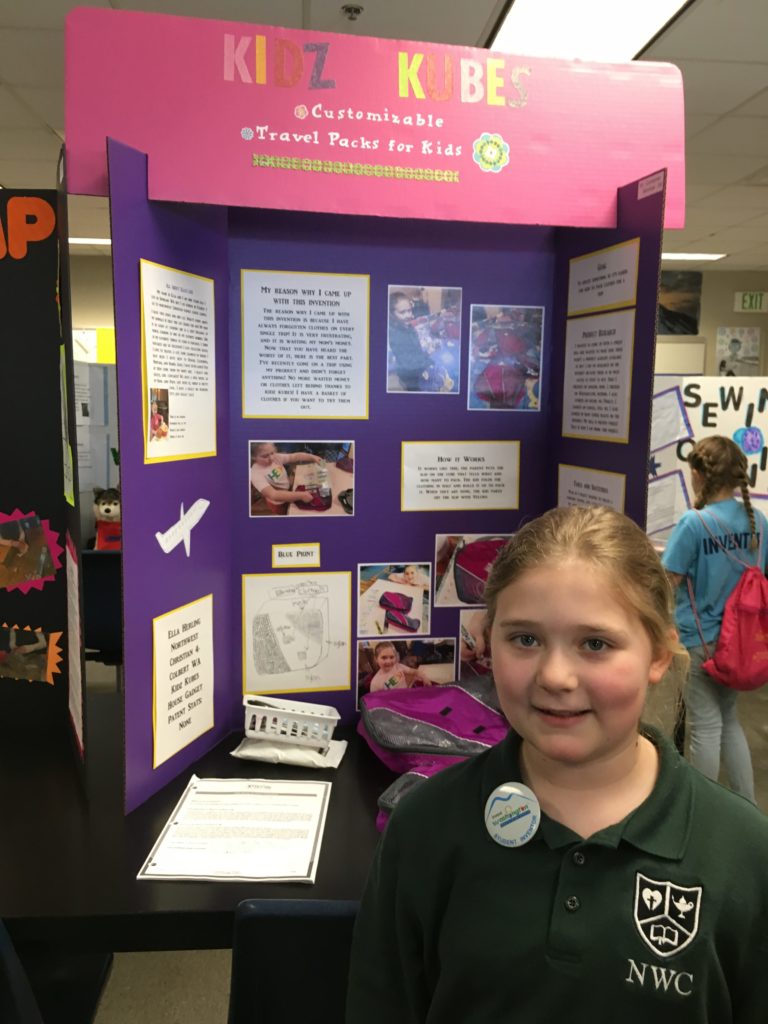 Fourth graders at NWCS had their first annual Invention Convention. They did a marvelous job! Students were tasked with identifying problems in their everyday lives and creating solutions for that problem. Each student created a prototype, or a working model, of their invention. Students used the invention process to develop their inventions by identifying a problem, researching the problem and solution, developing the solution, testing the solution, and revising the solution if necessary. They discovered that failure in the invention process is often a natural outcome. Working through failure allowed the students to persevere and develop improved prototypes of their inventions. Thirteen students entered the state competition for young inventors called, Invent Washington, where there were over 300 entries! Our students enjoyed showing their inventions and viewing those done by fellow inventors. Although our students did not place this year, several are motivated and excited to return next year with new inventions.