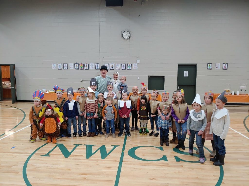 Cedar Campus’ Elementary students and families enjoyed a Thanksgiving celebration all together! Over 70 people attended this special event. Not only did they partake in a giant feast including yummy turkey and pumpkin pie, but the kids dressed up as Native Americans and pilgrims. Dr. Jack Hancock and Carol Hancock surprised the kids by joining in dressed up as Governor William Bradshaw and his wife!