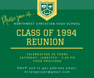 Attention Northwest Christian Classes of 1955, 1965, and 1975! We would like to invite you to be our honored guests at the 2025 NWCS Senior Graduation Ceremony on Saturday, June 7 from 1 pm to approximately 3 pm. Please RSVP ...