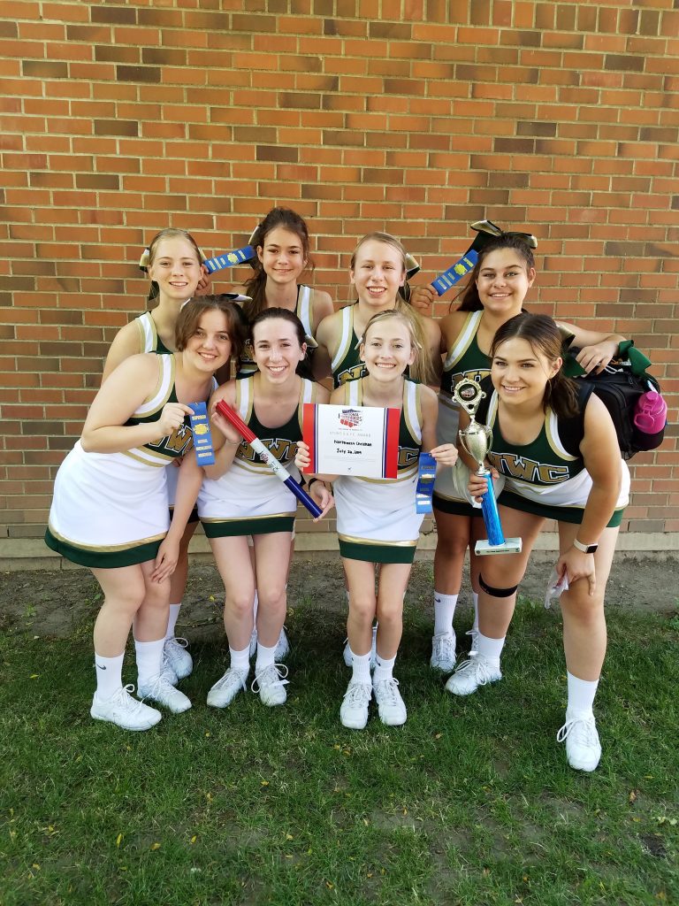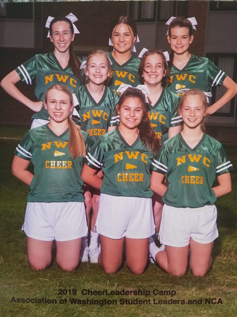 The 2019-2020 NWCS Cheer team has been practicing hard the last 4 months and recently returned from NCA CheerLeadership Camp (along with 500 other cheerleaders)! The team learned so much, bonded, and received multiple awards, including: superior ribbons for chant/cheer, a trophy for Most Improved, 2 leadership awards, a stunt safe certificate, and a spirit stick every day! Four of our girls were also nominated for All-American honors, while the team received a coach’s award for team unity.