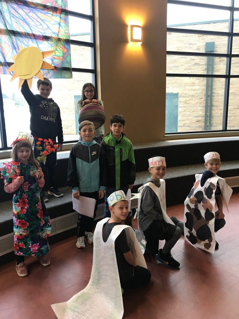 We finished chapel with 4th graders acting out the story of the seeds falling on a well-used path, thorny ground, rocky ground and fertile ground. Being rooted in Christ, our theme this year, means we need a heart that is receptive to the seeds, the word of God, producing fruit and not destroyed by troubles, distractions and pleasures.