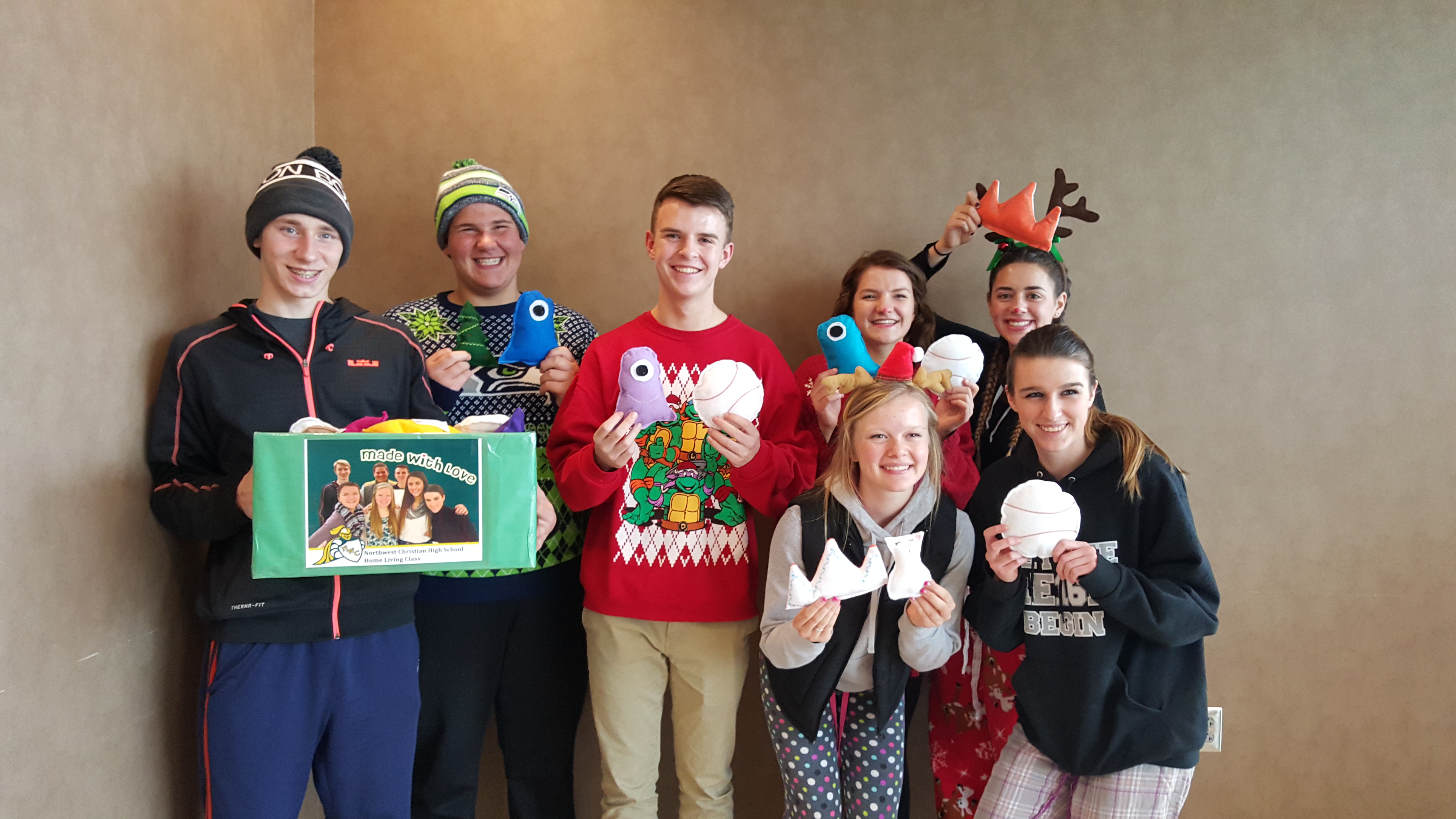 their teacher, Lisa Greer, in NWC’s Home Living class delivered “PICC Pal” pillows to patients at Sacred Heart Children’s Hospital on December 2. The pillows are meant to go between the child’s skin and their PICC (peripherally inserted central catheter line). The PICC is placed in their forearm to provide chemo therapy or other long-term treatments.