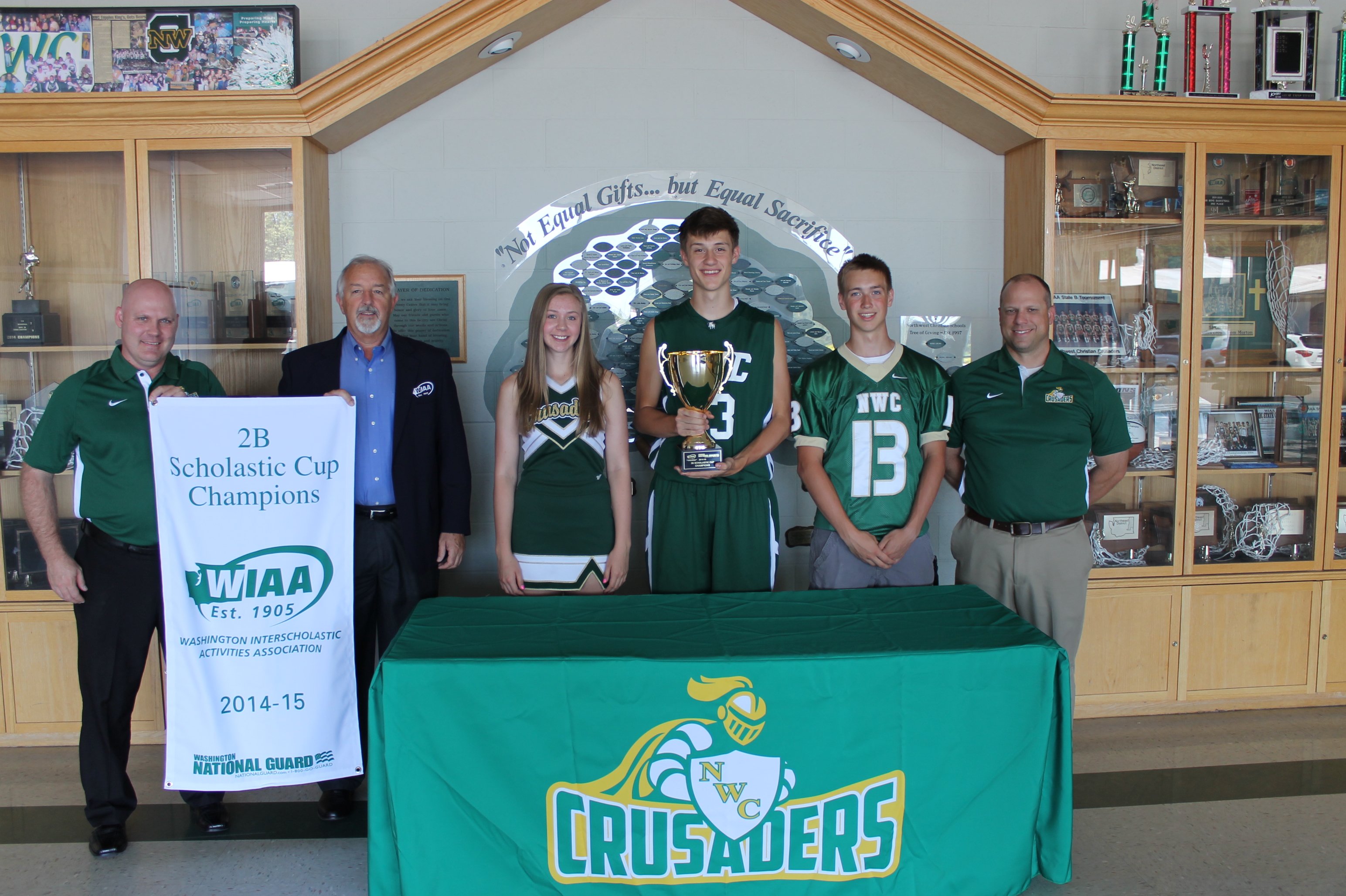 west Christian Schools recently won the WIAA-Washington Army National Guard Scholastic Cup 2B Championship for 2014-2015. The Scholastic Cup showcases schools that excelled in sportsmanship, academics and in competitive achievement for an entire year,” WIAA Executive Director Mike Colbrese said. “This award brings an entire school together as each student-participant contributed to capturing the Association’s highest honor.”