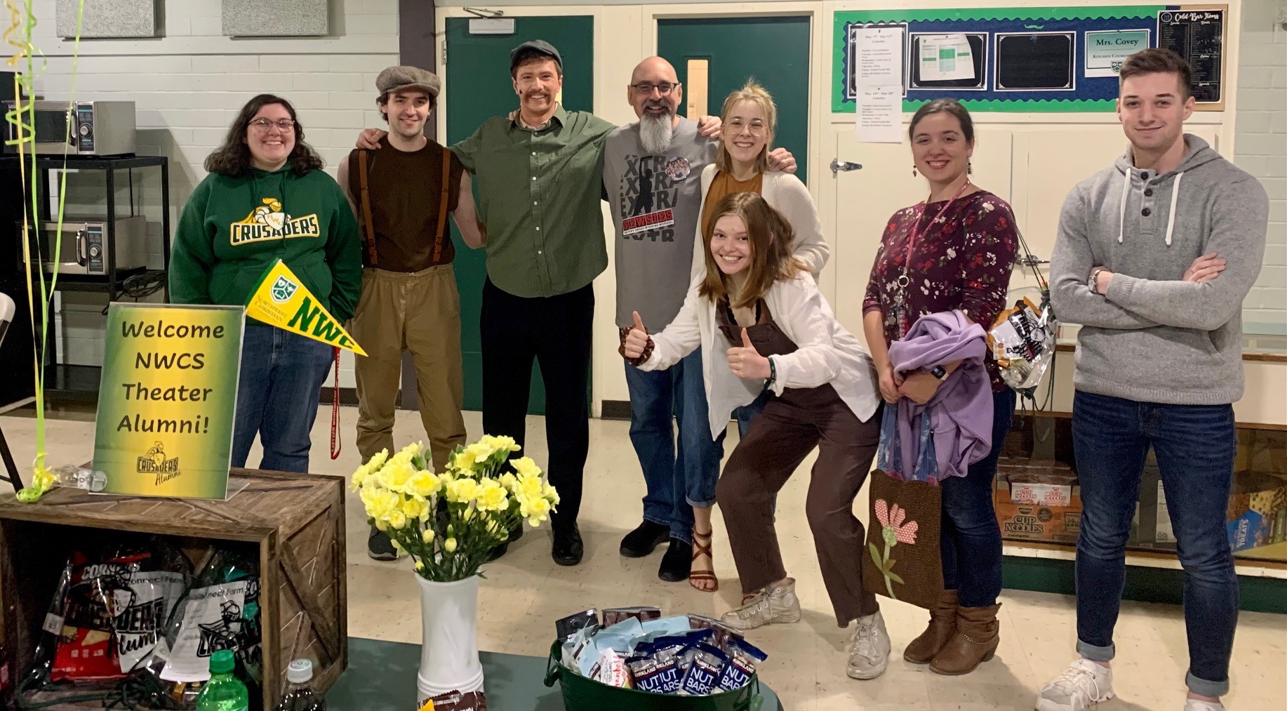 It was so good to welcome back our NWCS theater alumni! On Saturday, 12 March, 30 alumni from the classes of 1975-2021 came to see one another and enjoy an awesome performance of our current spring musical, Newsies. Mr. Rick Taylor was thrilled to see everyone and recognized our theater alumni at the start of the show. While we were unable to get photos of everyone, it was fabulous to see them and watch the reunions unfold. Seven alumni are helping with the current production. Thank you alumni for sharing your gifts and talents through our NWCS theater program!